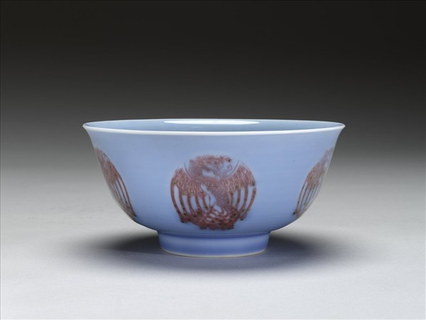 天藍釉紅彩團鳳紋碗