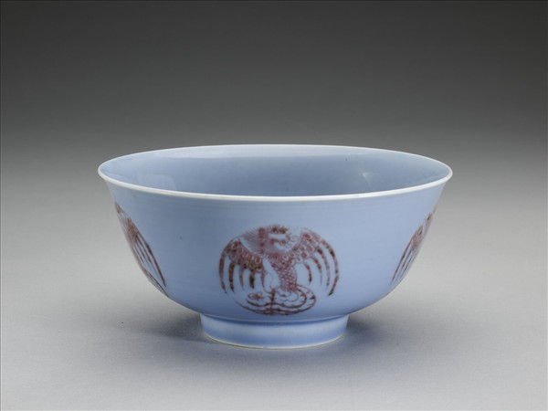 天藍釉紅彩團鳳紋碗
