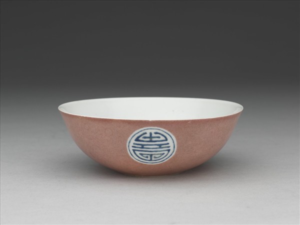 胭脂紅彩暗八寶團壽淺碗
