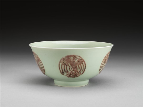 冬青釉紅彩團鳳紋碗