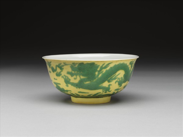 黃地綠彩白裡雙龍戲珠紋碗