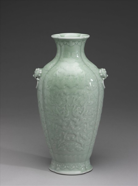 青瓷福壽紋海棠式瓶