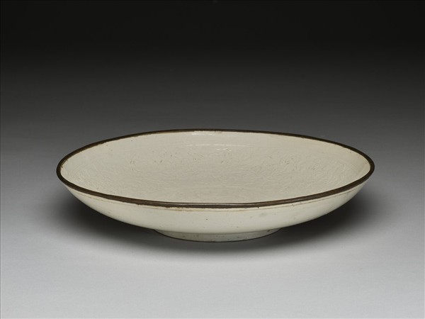 定窯 白瓷印花蓮塘牡丹紋盤