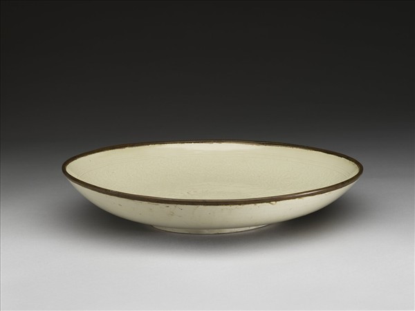 定窯 白瓷印花蓮塘牡丹紋盤