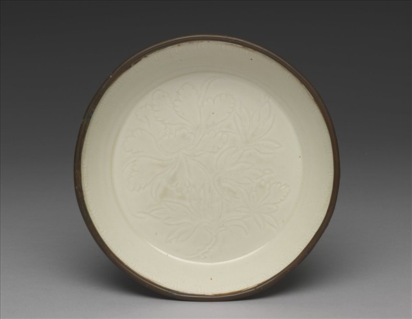 定窯 白瓷劃花牡丹紋盤