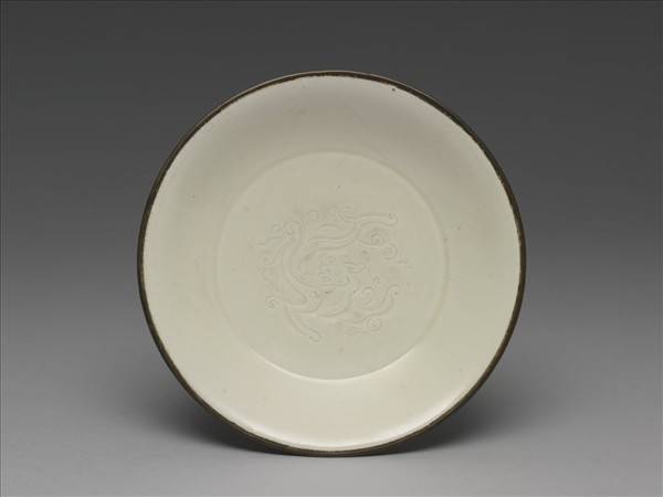 定窯 白瓷劃花蓮瓣螭龍紋盤