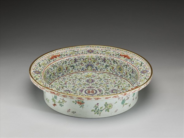 粉彩纏枝花卉吉祥紋盆