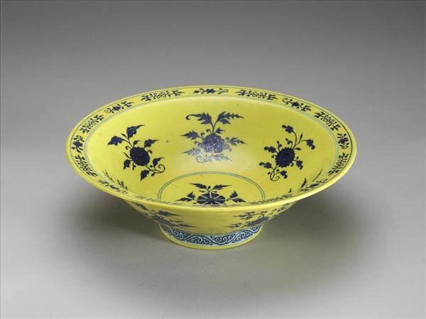 青花黃地花卉紋碗