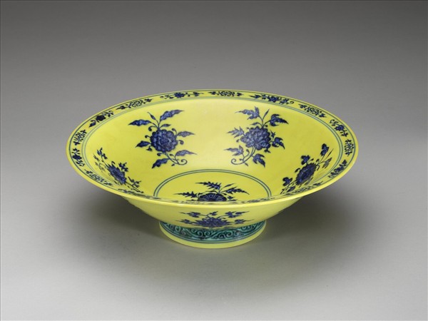 青花黃地花卉紋碗