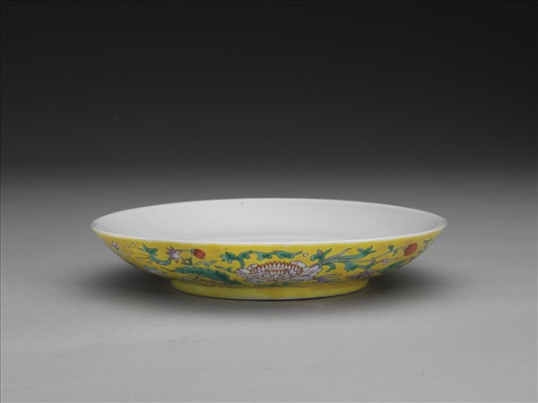 粉彩黃地花卉紋盤