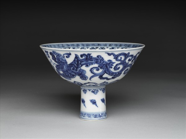青花夔龍紋高足碗