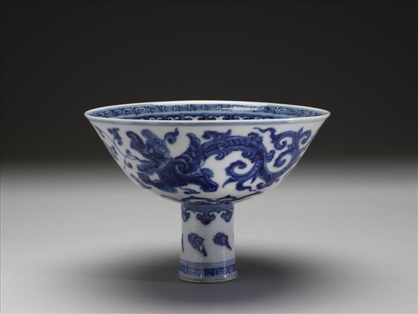 青花夔龍紋高足碗