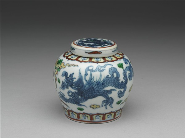 鬥彩夔龍紋蓋罐