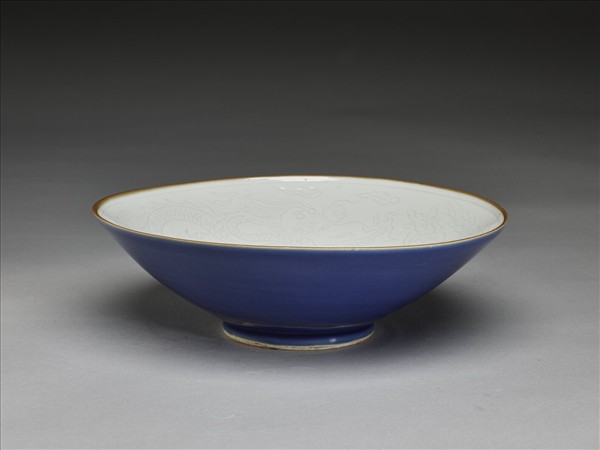 霽青釉白裡雙龍戲珠紋碗