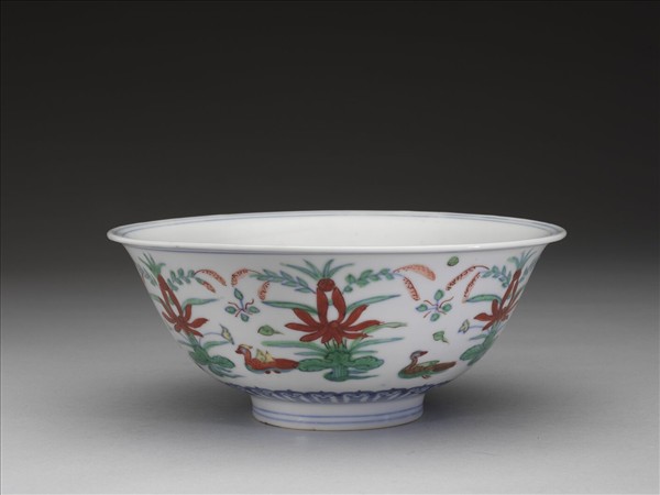 五彩蓮塘鴛鴦紋碗