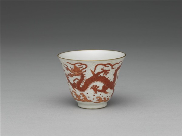 白瓷描紅雲龍紋杯