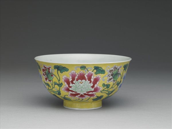 琺瑯彩黃地牡丹紋碗