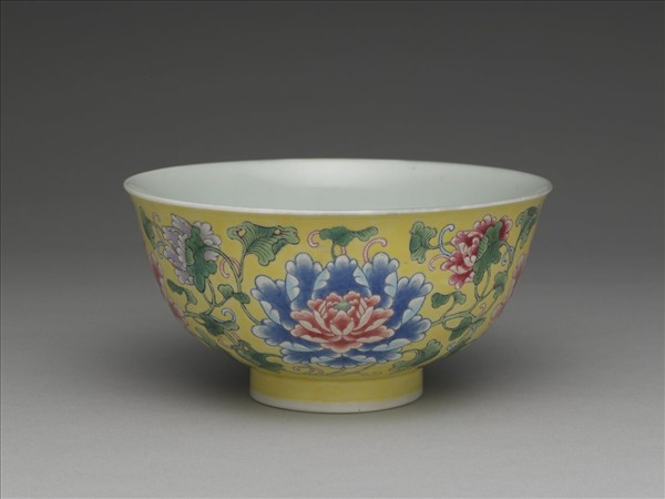 琺瑯彩黃地牡丹紋碗