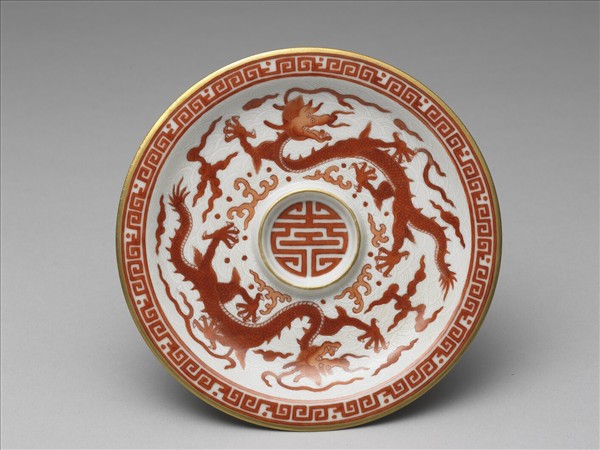 白瓷描紅雲龍紋杯托