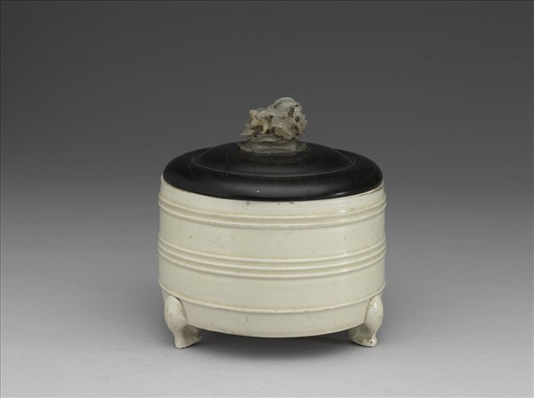 掀開爐蓋,內面中心寫有「甲」字銘,那是乾隆皇帝的鑑賞評等標記。而左邊戳刻三枚印章,其中兩方為「墨林」印,另一方為「項氏家藏」。從項元汴號墨林,而能說明這件瓷爐亦為項家舊藏物。