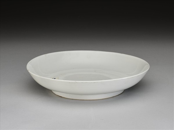 敞口,淺壁,矮圈足。釉色甜白,樸素無紋飾。