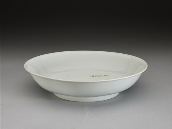 侈口,淺壁,矮圈足。釉色甜白,樸素無紋飾。