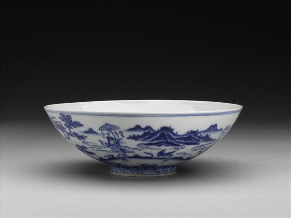 青花山水人物圖碗