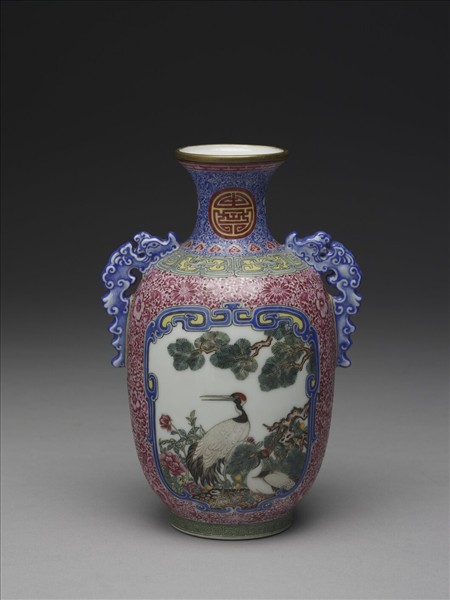 琺瑯彩開光花鳥圖螭耳瓶