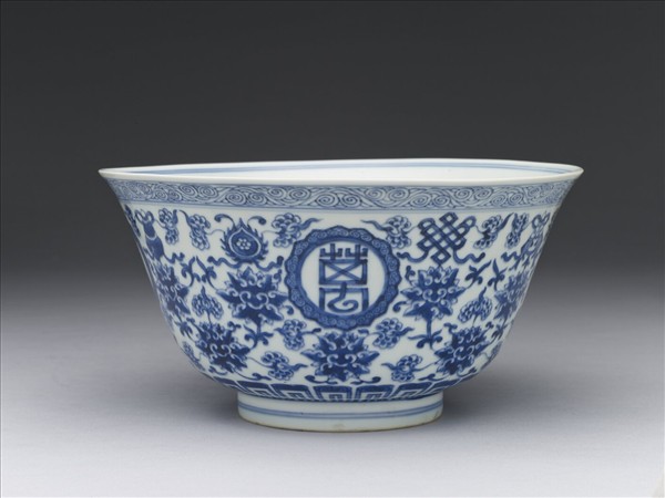 青花番蓮八寶萬壽無疆碗