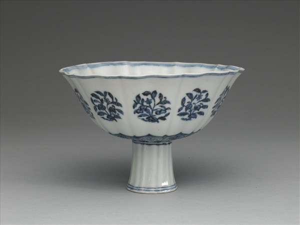 青花團花紋高足碗