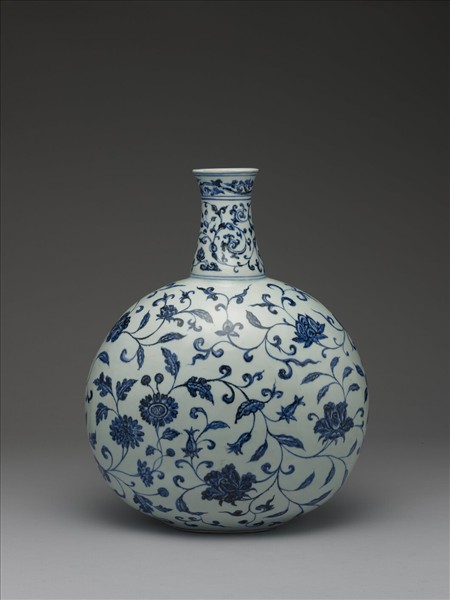 青花四季花卉紋扁壺