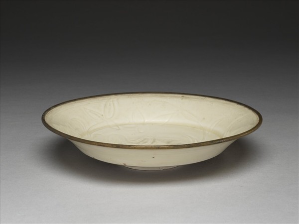 定窯 白瓷劃花雙鳧紋折腰盤