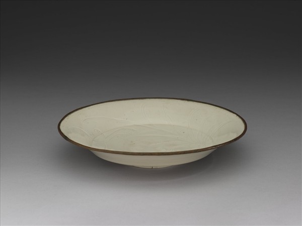 定窯 白瓷劃花雙鳧紋折腰盤