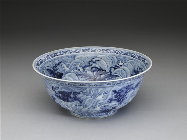 青花波濤海獸紋碗