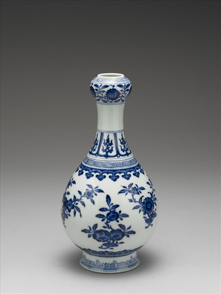 青花花卉紋蒜頭瓶