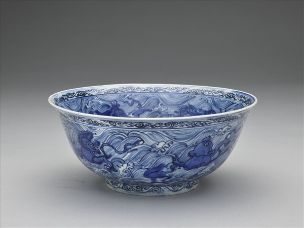 青花波濤海獸紋碗