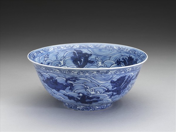 青花波濤海獸紋碗