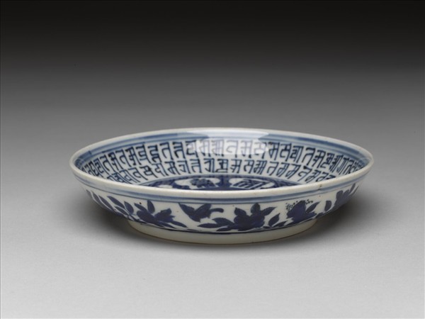 青花花鳥梵文盤