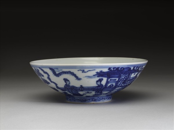 青花山水仕女圖碗