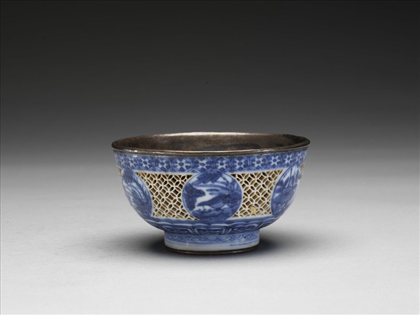 青花鏤空開光花鳥紋碗