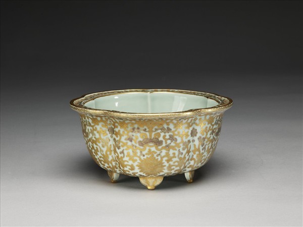 青瓷描金番蓮紋梅花式盆