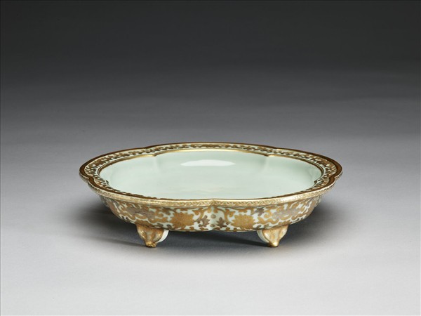 青瓷描金番蓮紋梅花式盆托