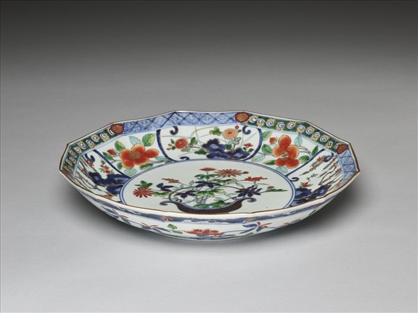 有田窯 五彩花卉紋十二方盤