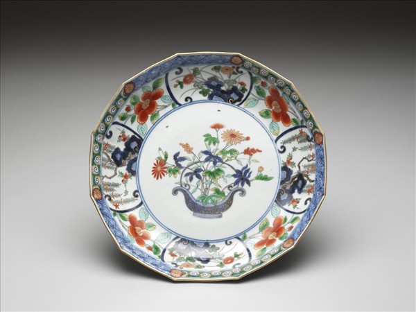 有田窯 五彩花卉紋十二方盤
