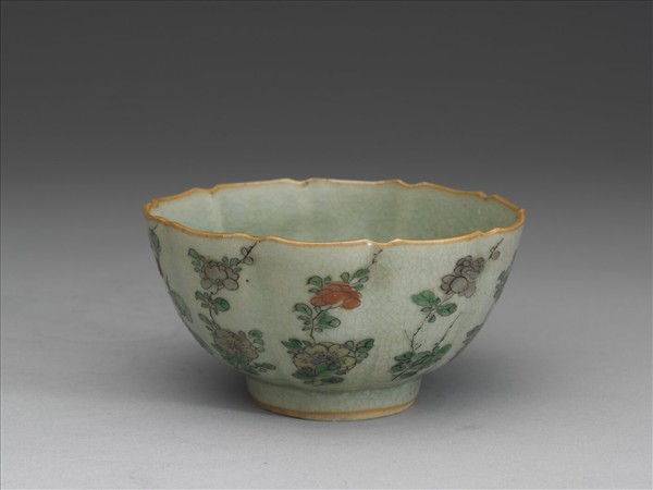 青瓷五彩花卉紋牡丹花式碗