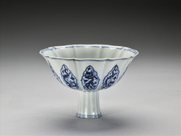 青花龍紋牡丹花式高足碗