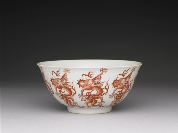 白瓷描紅九龍紋碗