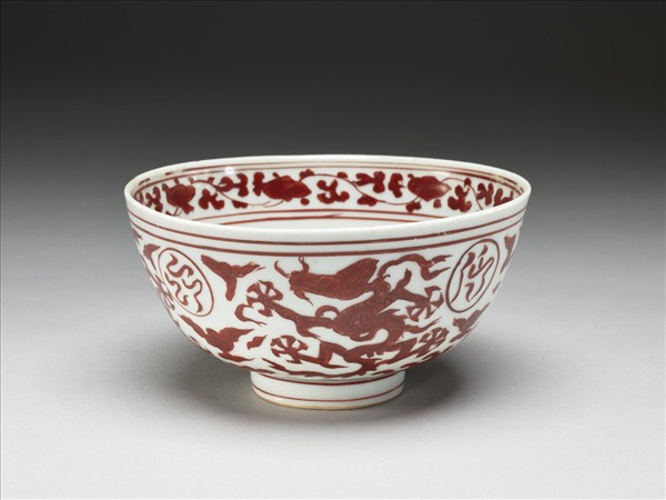 描紅五龍碗