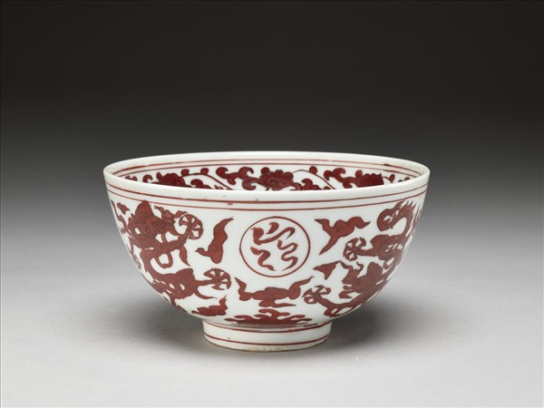 白釉紅彩五龍紋碗