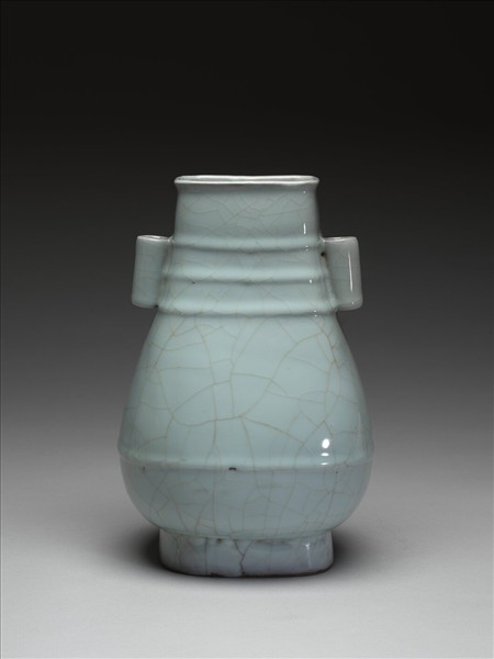 仿官釉青瓷貫耳瓶